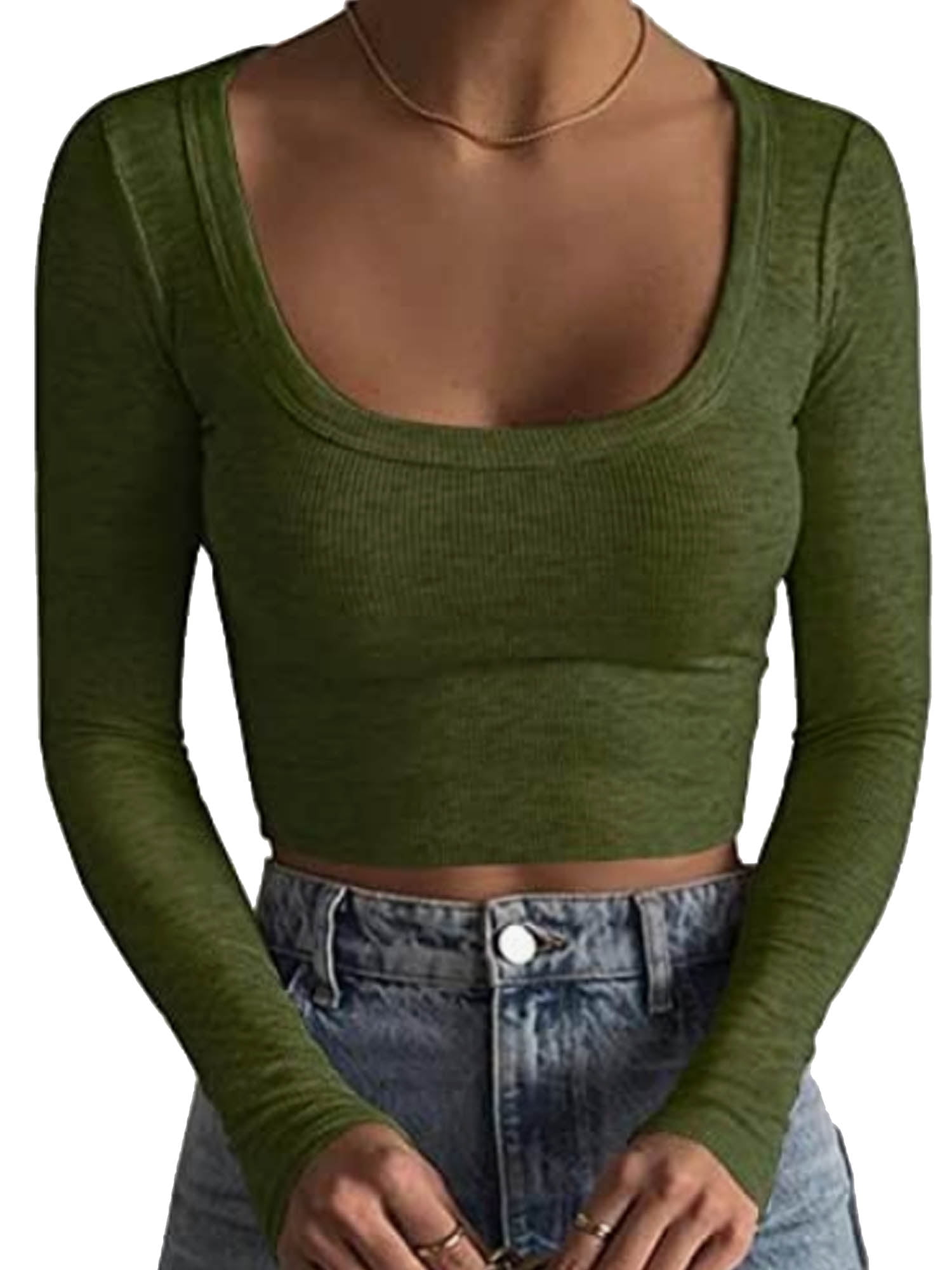 Women Long Sleeve Crop Top Square Neck Ribbed Knit Slim Fit Bodycon Skinny Cropped Tee Shirts Blouse Streetwear Walmart Com